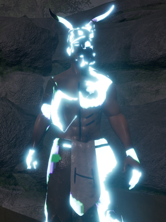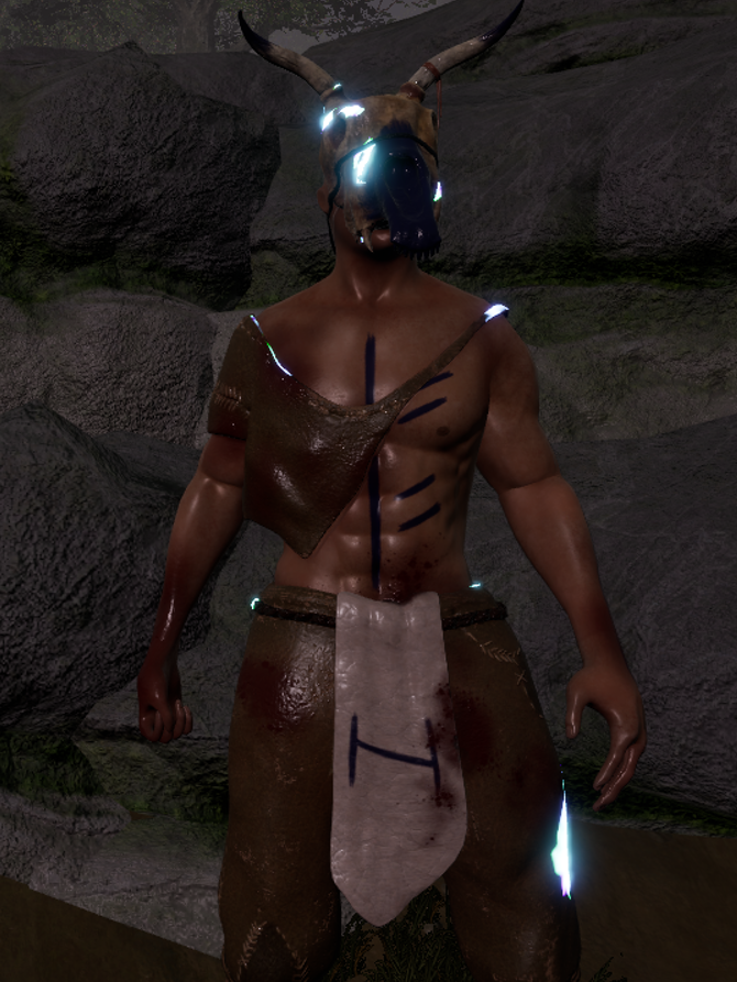 Die Tierskelett-Maske wurde hier, anders als beim First Stage Charakter, um Hörner ergänzt, um die fortschreitende Transformation sichtbar zu machen.